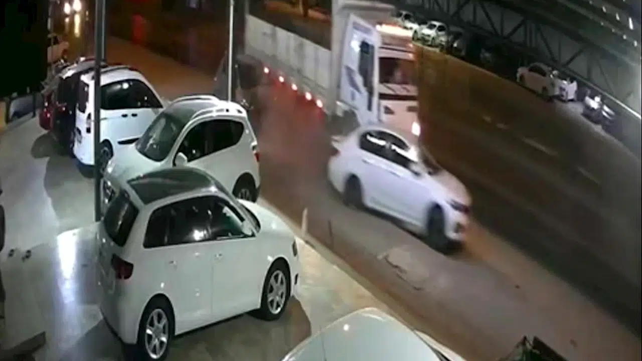 Kaza, galerinin güvenlik kamerası tarafından görüntülendi. Görüntüde kamyonun ilerlerken park halindeki 2 otomobille galerideki 2 araca çarparak durmasının ardından sürücünün dışarı çıkıp araçlara baktığı anlar yer aldı. Polis kazayla ilgili inceleme başlattı. (DHA)