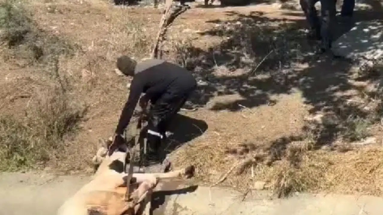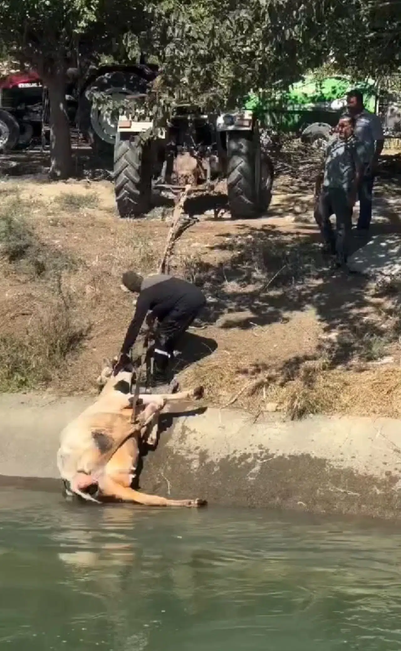 Okan ÇALIŞKAN/TARSUS(Mersin), (DH)- MERSİN’in Tarsus ilçesinde sulama kanalına düşen inek kurtarıldı.