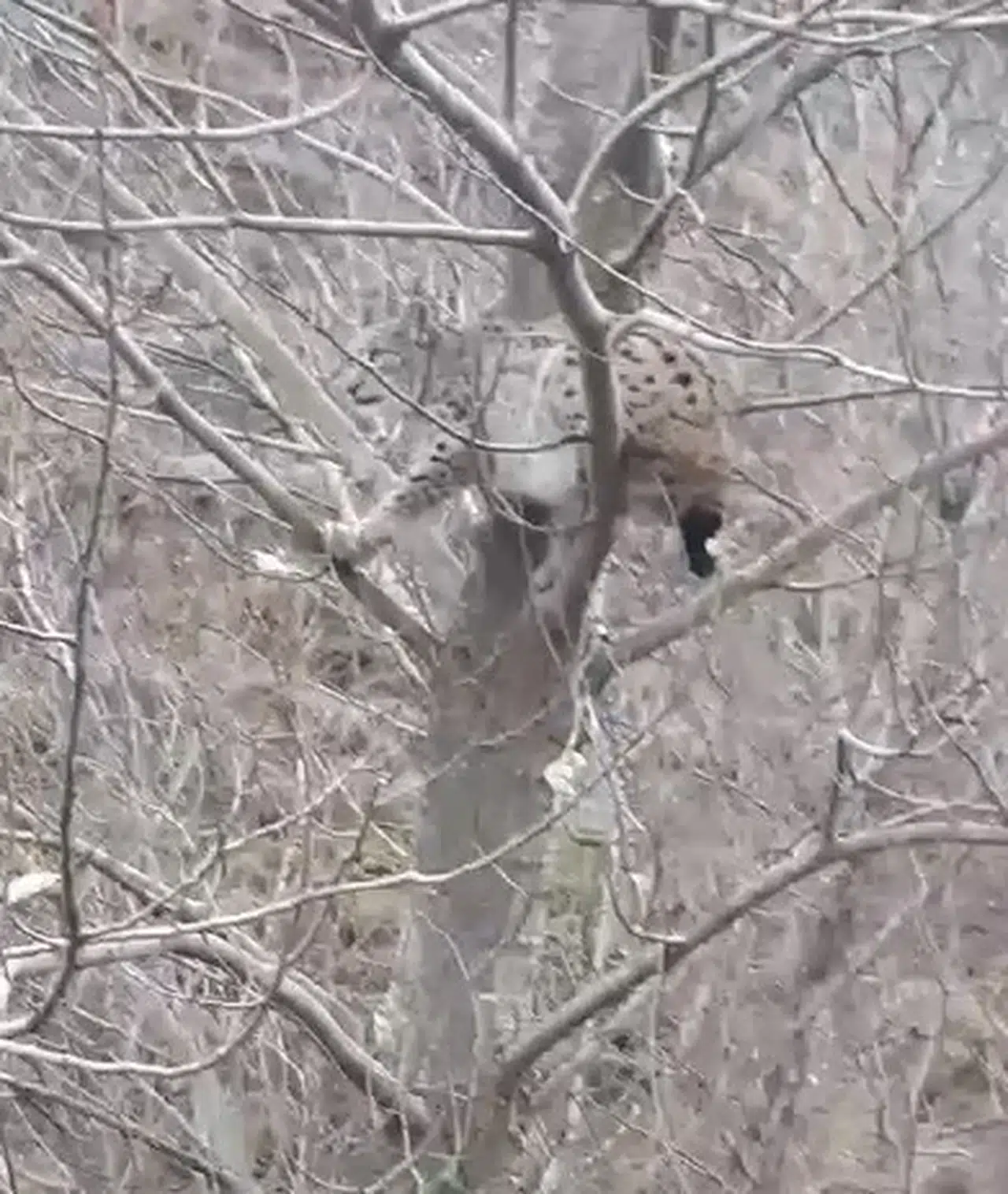 Uğur YİĞİT/SİVAS, (DHA)- SİVAS’ın Yıldızeli ilçesinde, nesli tükenme tehlikesindeki hayvanlar arasında yer alan bir vaşak, Kangal köpeklerinden kaçıp ağaca tırmandı. Ağaçtaki vaşak, cep telefonuyla kayda alındı.
