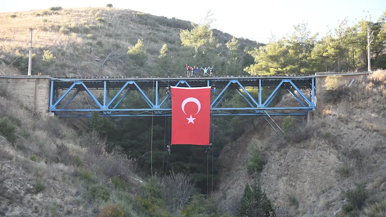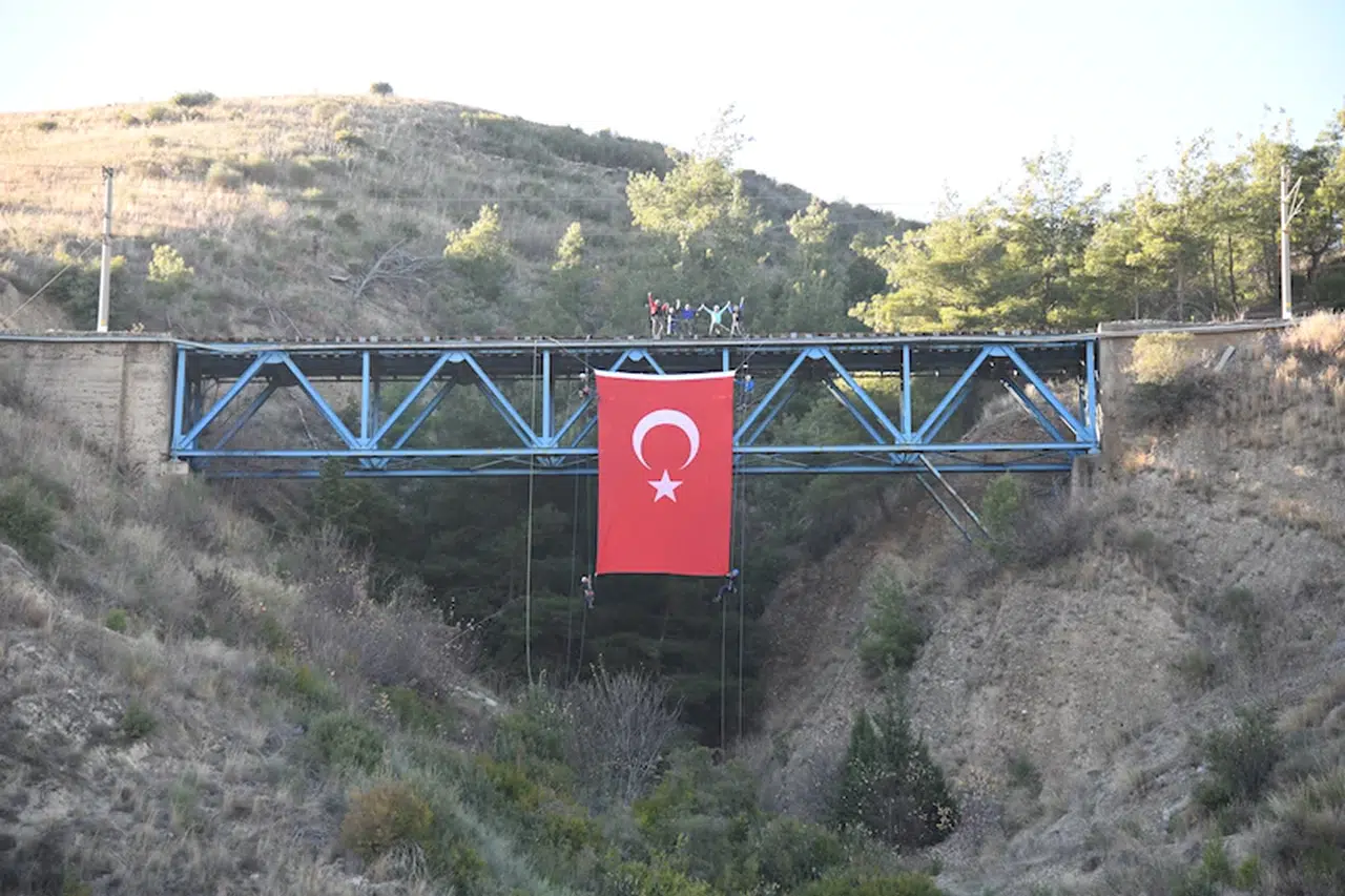 Kanlıgeçit tren köprüsünde kurtuluş şehitleri anısına Türk bayrağı dalgalandırdı
