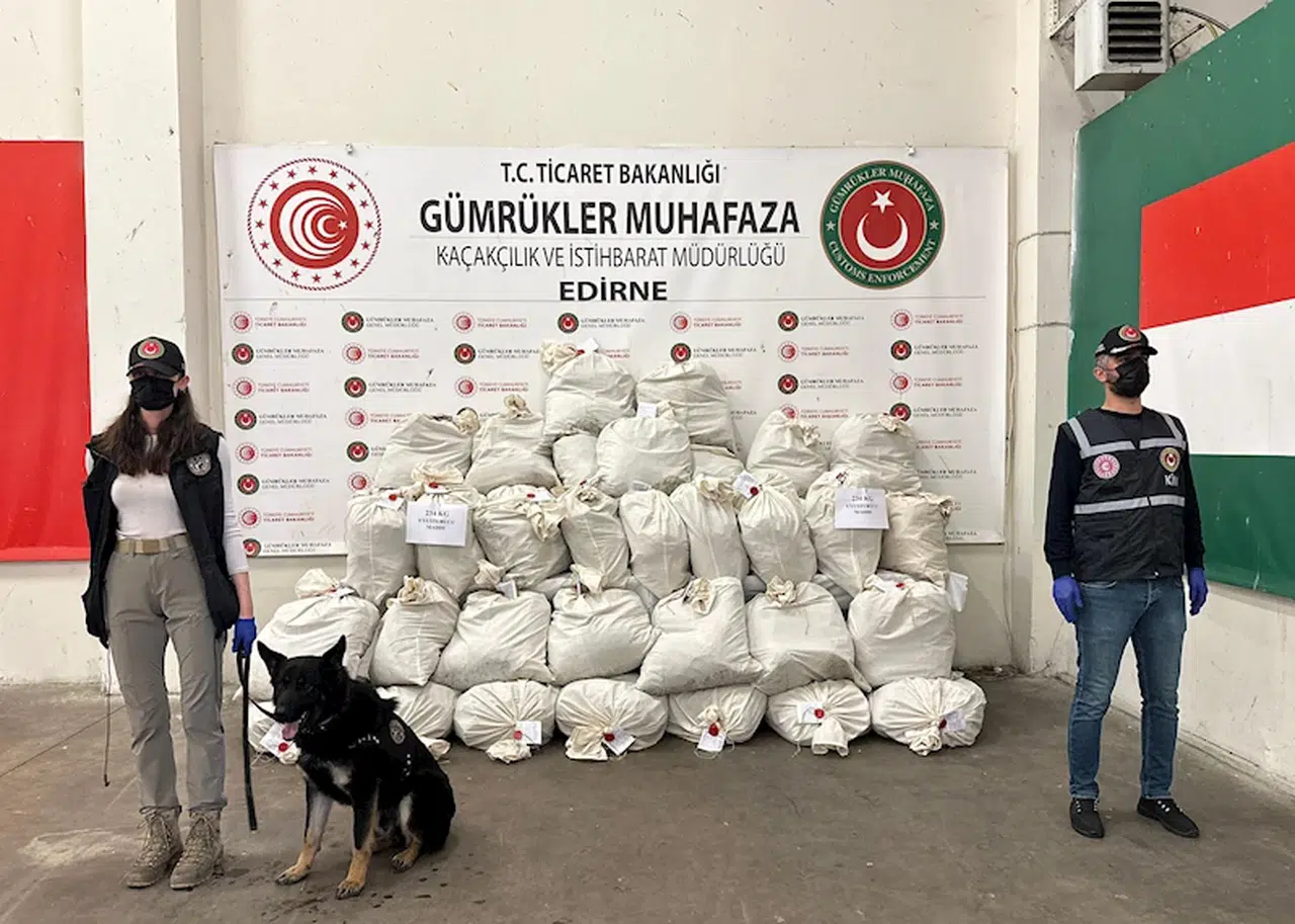 Kapıkule'de otobüsteki 234 kilo esrarı, narkotik köpeği Turbo buldu