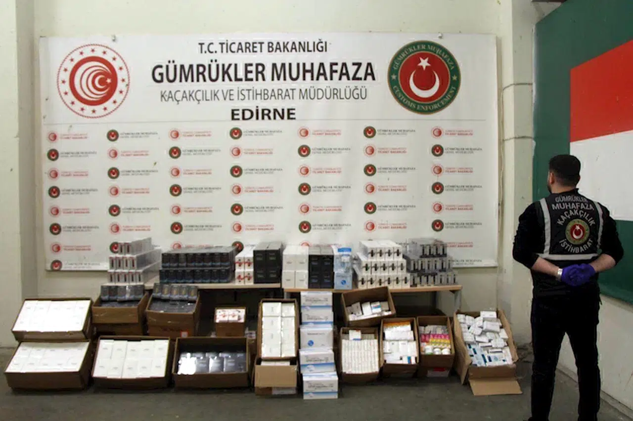 Umut IŞIK/EDİRNE, (DHA)- EDİRNE'den Bulgaristan'a açılan Kapıkule Sınır Kapısı'ndan yurda giriş yapan bir TIR'da kaçak elektronik sigara ile çok sayıda ilaç ele geçirildi.