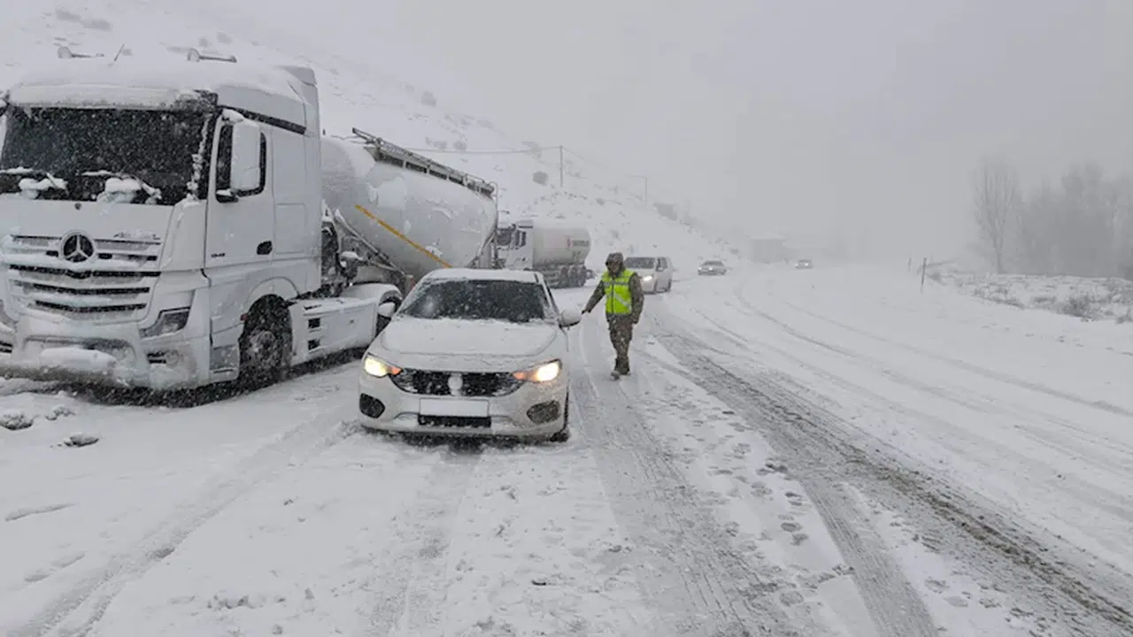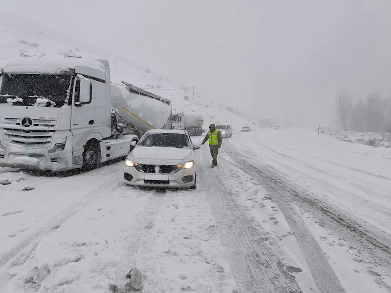 Vali Baruş, Erzincan-Kelkit kara yolu Yeniyol Jandarma kara yolu mevkisinde 6 tır ile 3 sivil araçta bulunan 15 kişinin karakol binasında misafir edildiği bilgisini paylaştı.