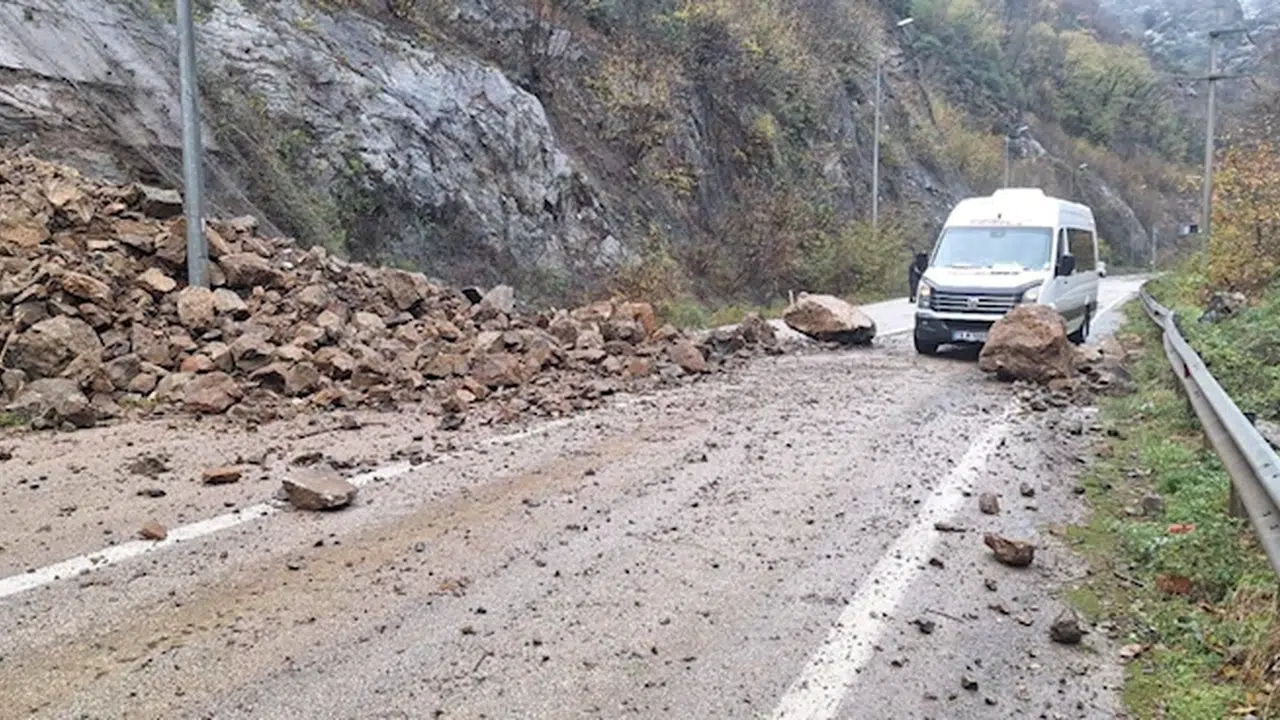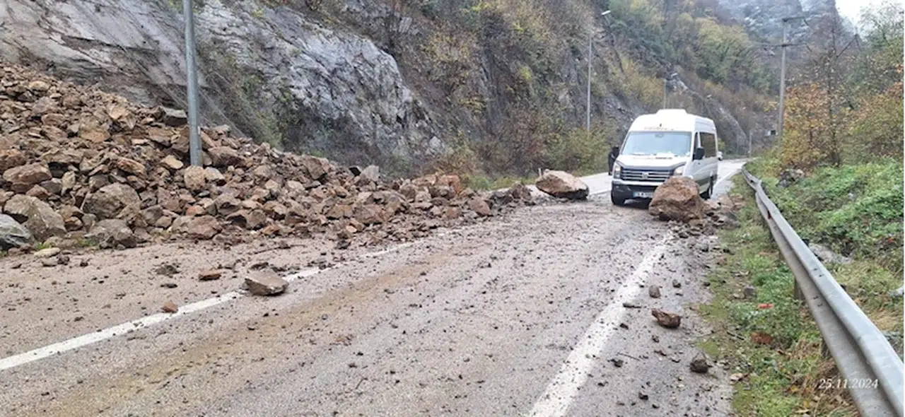 Karayolları ve İl Özel İdaresi ekiplerinin kaya parçalarını yoldan kaldırmasının ardından yoldaki ulaşım normale döndü.