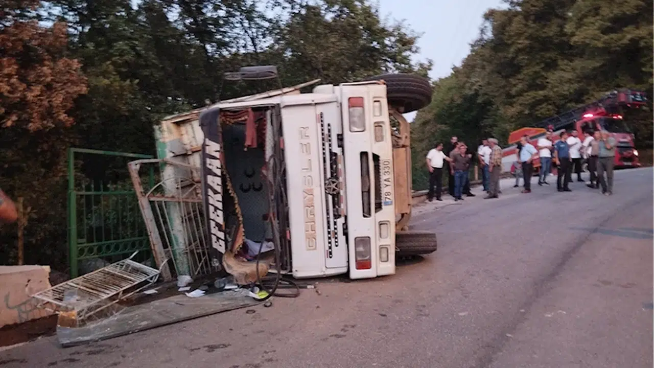 KARABÜK (AA) - Karabük'ün Yenice ilçesinde, tomruk yüklü kamyonun devrilmesi sonucu yaralanan sürücü hastaneye kaldırıldı.