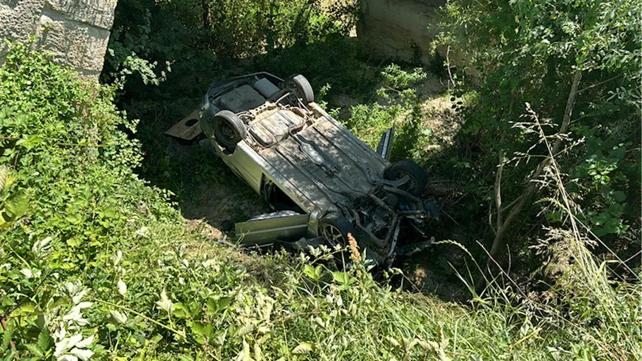 - Safranbolu'da kontrolden çıkan otomobil dere yatağına devrildi