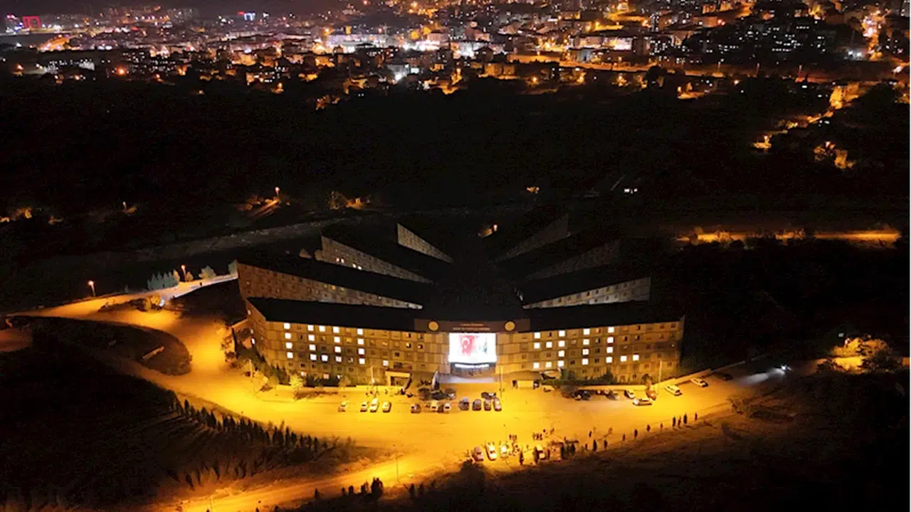 Karabük'te öğrenci yurtlarının oda ışıklarıyla "101. YIL" yazısı oluşturuldu