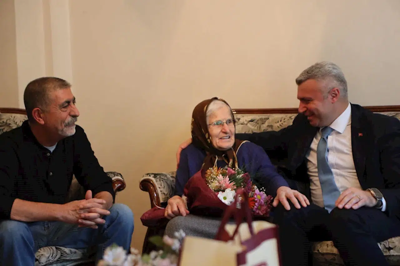 İl Özel İdaresi Genel Sekreteri Şerafettin Kelleci de 102 yaşındaki Osman Karabacak'ı evinde ziyaret etti.