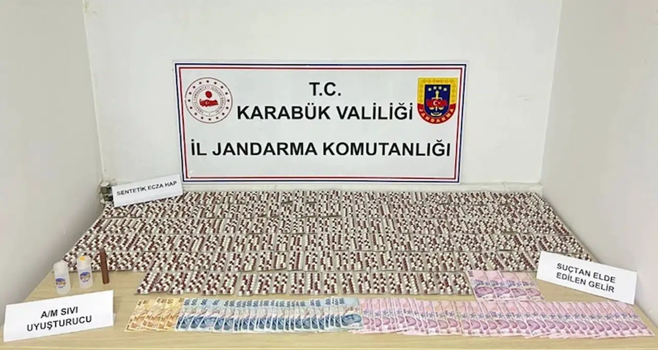 Aramada, 2 bin 784 sentetik ecza hap, sıvı sentetik uyuşturucu ham maddesi, 19 farklı ebatlarda uyuşturucu emdirilmiş kağıt, 17 bin 965 lira uyuşturucu satışından elde edildiği değerlendirilen para ele geçirildi.
