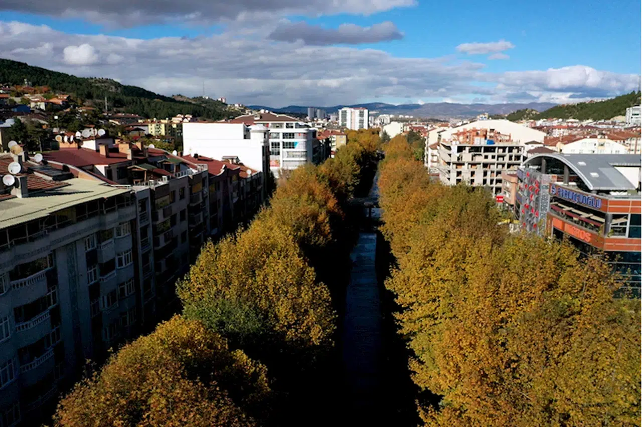 Dere boyunca çınar, ıhlamur, kavak ve pek çok farklı türdeki ağaçlarda oluşan sarı, yeşil, kahverengi, kırmızı ve pembe renkler kiremitli çatıların arasından uzayıp gidiyor.