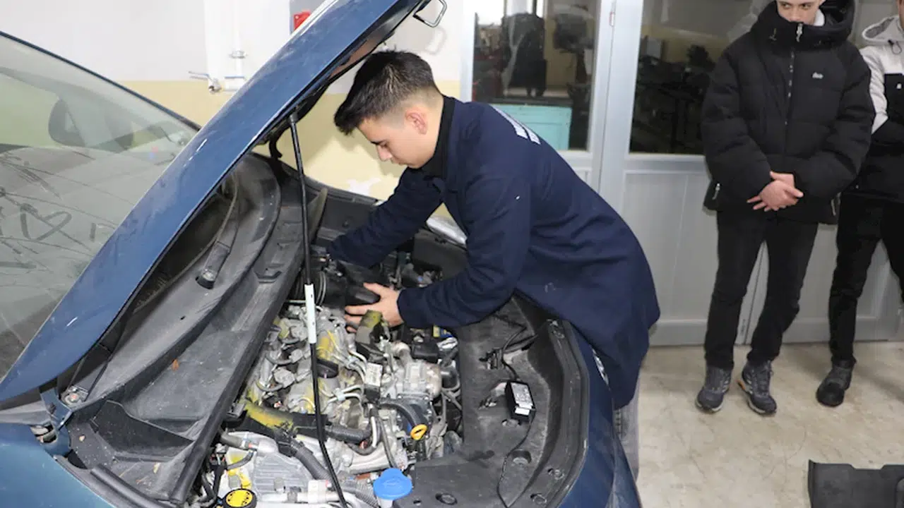 Öğrencilerin gelecek yıl staja başlayacaklarını ifade eden Elektrikli Araçlar Dalı Atölye Şefi Çağlar Cengiz, “2 yıldır atölyemizde öğrenci eğitimine devam ediyoruz. Şu anda 10 ve 11’inci sınıf düzeyinde öğrencilerimiz mevcuttur. Toplam 17 öğrencimiz var. Yeni bir alan ve yeni bir dal olduğumuz için şu anda özel sektörden ve yetkili servislerden de yoğun bir öğrenci talebi alıyoruz. Çünkü bu dalda henüz yetişmiş bir öğrenci mevcut değil. Elektrikli araçlar dalında Karadeniz bölgesinde ilk ve tek okuluz. Bu nedenle çevre illerden de okulumuza gelmek isteyen öğrenciler mevcut. Öğrencilerimize dalımızda bir elektrikli aracın veya hibrit araca ait bütün ekipmanlar, bileşenler, bu bileşenlerin tanımları, çeşitleri, varsa arızaları, bu arızalar nasıl çözülüyor, hangi test cihazlarıyla kontrol ediliyor. Bunlarla çalışılırken nelere dikkat edilmesi gerekiyor. Özellikle elektrikli araçlardan bahsettiğimiz için bizim en çok risk teşkil eden parçamız bataryamızdır. Bataryalarla çalışırken özellikle iyi bir izole ve bataryanın tamamen deşarj olduğundan emin olmamız gerekiyor. Bu konularda öğrencilerimizi hazırlıyoruz. Öğrencilerimizde şu anda heyecanlı ve meraklılar. 12’nci sınıflarımız önümüzdeki yıl staja gidecekler. Yetkili servislerden de bu yönde talep var” dedi.