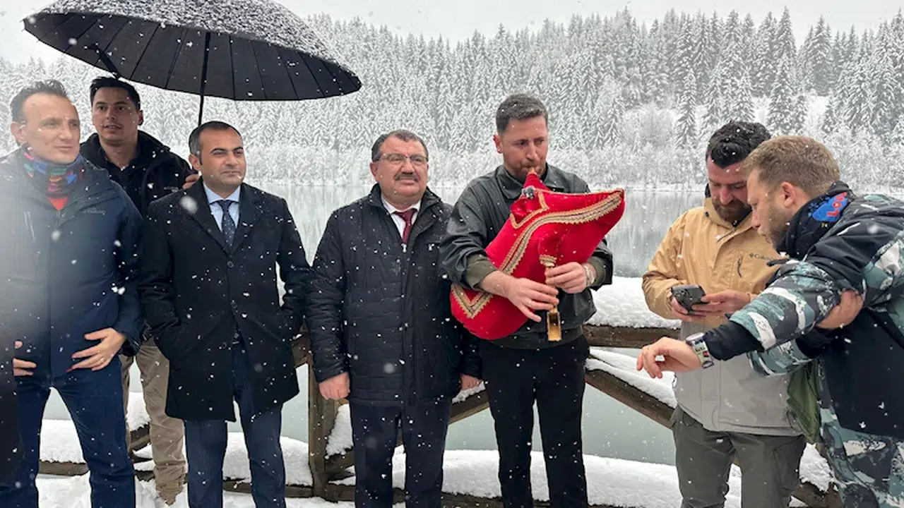 Nurbay USTA/ŞAVŞAT (Artvin), (DHA)- ARTVİN’in Şavşat ilçesindeki Karagöl Tabiat Parkı, yağan karla birlikte beyaza büründü. Bölgenin turizm potansiyelini artırmak ve doğal güzelliklerini daha geniş kitlelere tanıtmak için Karagöl’de kar yağışı eşliğinde toplantı düzenlendi.