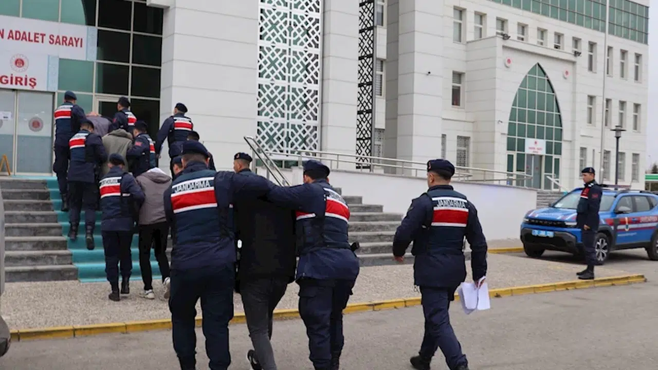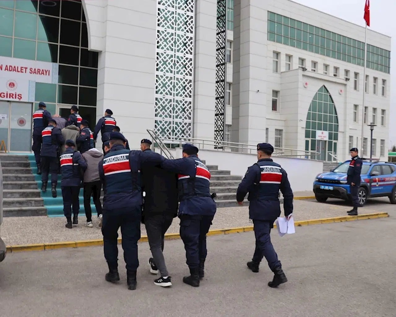 İl Jandarma komutanlığı ekipleri, haklarında 'uyuşturucu ticareti yapmak' suçlarından 20 yıl kesinleşmiş hapis cezası bulunan M.H., 16 yıl 6 ay hapis cezası olan Y.A. ve 13 yıl 4 ay hapis cezası bulunan N.D. ile 'Hırsızlık' suçundan 1 yıl 8 ay 7 gün kesinleşmiş hapis cezası bulunan E.N.'yi yakaladı. 4 kişi, jandarmadaki işlemlerinin ardından sevk edildikleri mahkemece tutuklandı. (DHA) FOTOĞRAFLI