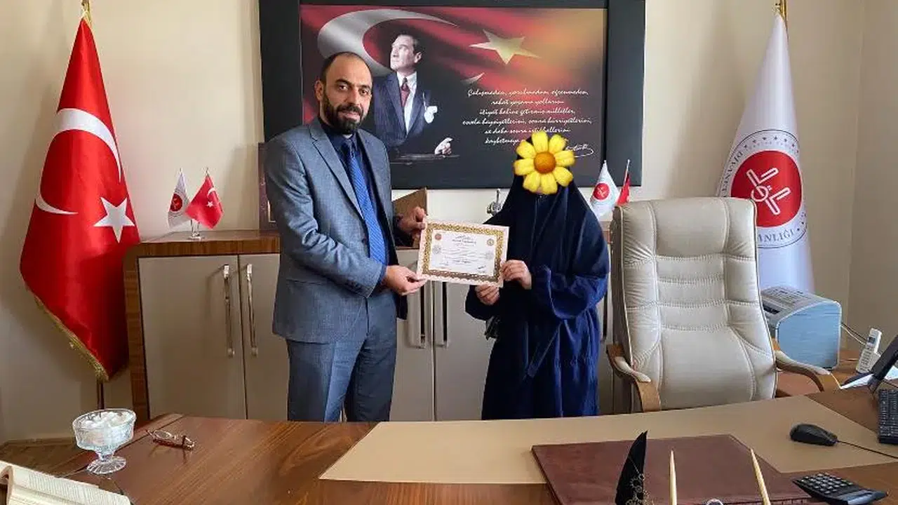 Karayazı’da dini eğitim alanında önemli çalışmalara imza atan Ali Şeker Kız Kur’an Kursu, üçüncü dönem hafızlık mezununu verdi. Kursun öğrencilerinden biri, başarılı bir hafızlık eğitiminin ardından diplomasını alarak Kur’an-ı Kerim’i ezberleme başarısını taçlandırdı.