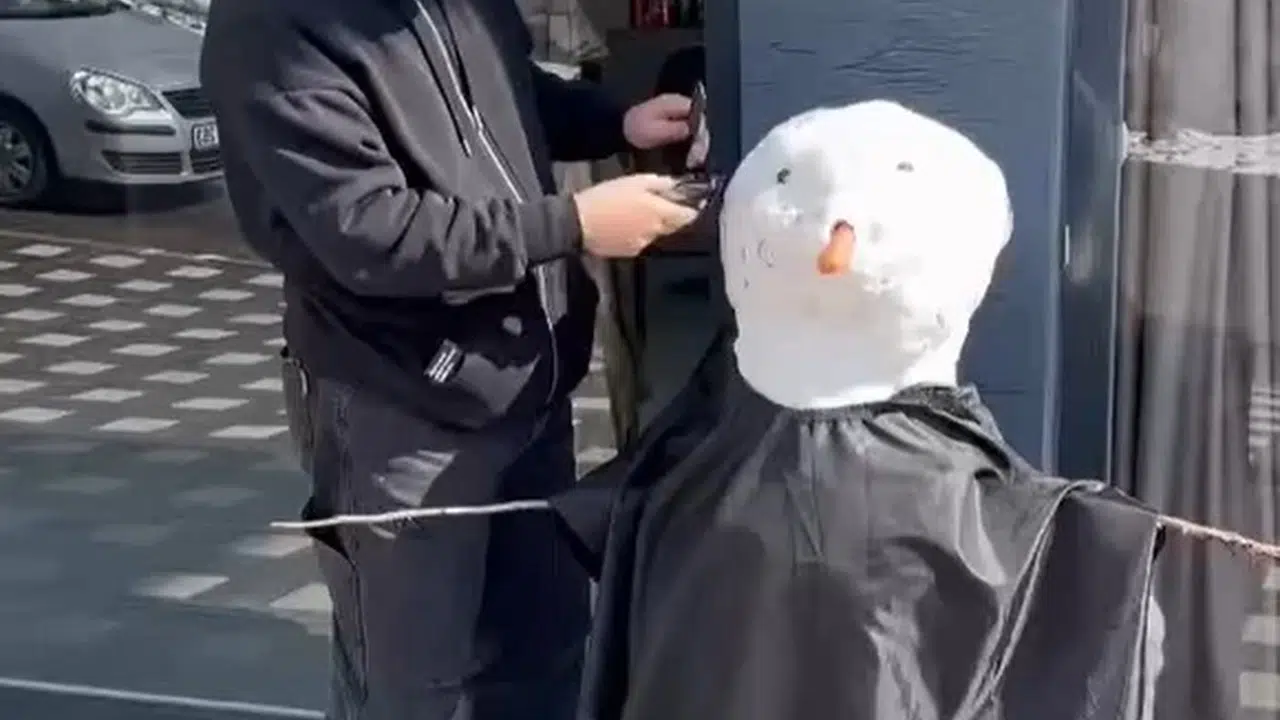 Karda sörf yapıp, kardan adamı tıraş ettiler