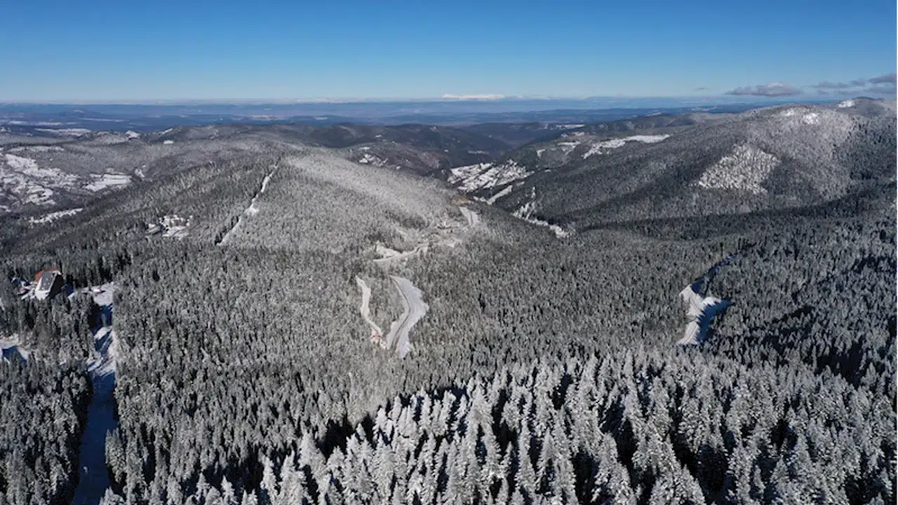 Karla kaplanan Ilgaz Dağı dronla görüntülendi