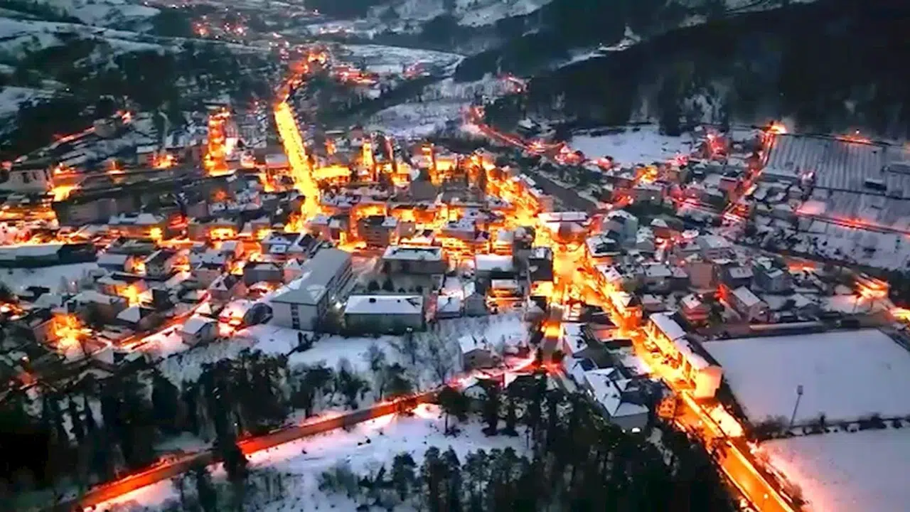 Musa KESKİN/YIĞILCA(Düzce),(DHA) – DÜZCE’nin Yığılca ilçesi etkili olan kar yağışının ardından beyaz örtüyle kaplandı. Karla kaplı ilçe dron ile havadan görüntülendi.