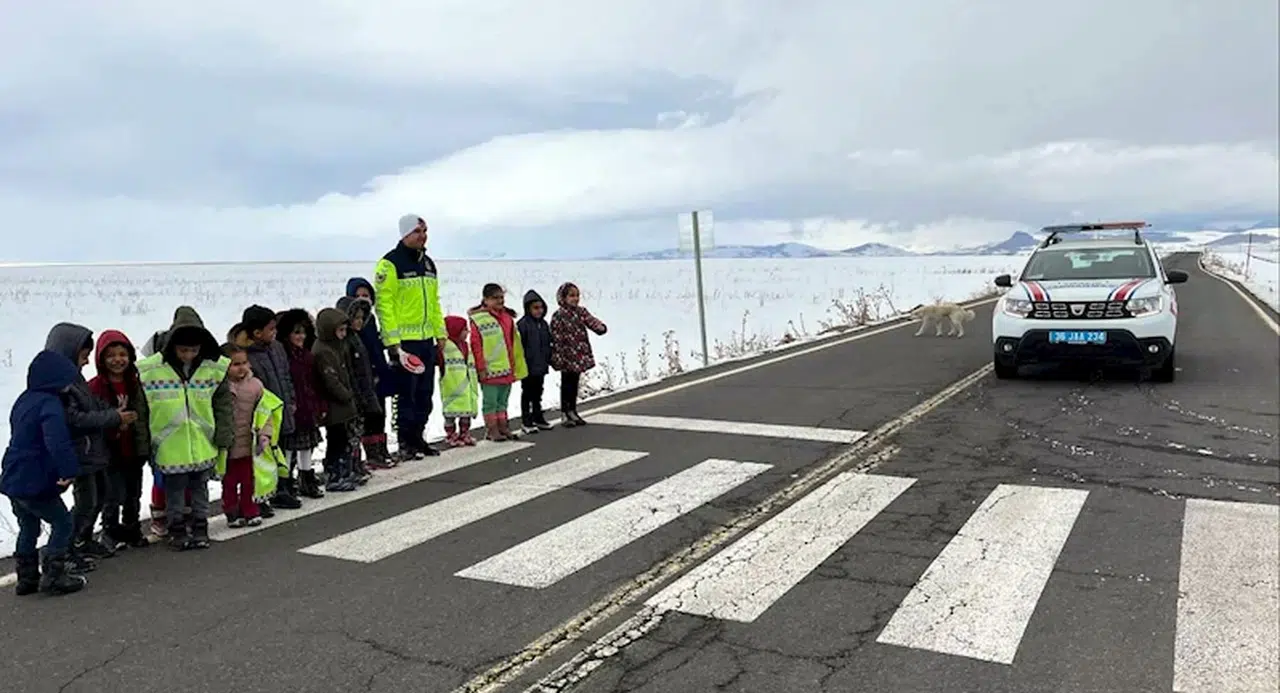 Bedir ALTUNOK/KARS, (DHA)- KARS İl Jandarma Komutanlığı’na bağlı Jandarma Trafik Timleri, köylerdeki ilkokul öğrencilerine kara yolunda uygulamalı trafik eğitimi verdi.