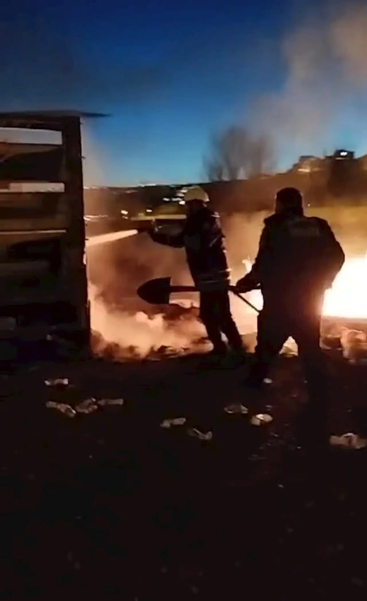 Volkan KARABAĞ/ KARS, (DHA)- KARS'ta geri dönüşüm malzemesi yüklü kamyonetin kasasında çıkan yangın, itfaiye ekiplerince söndürüldü.