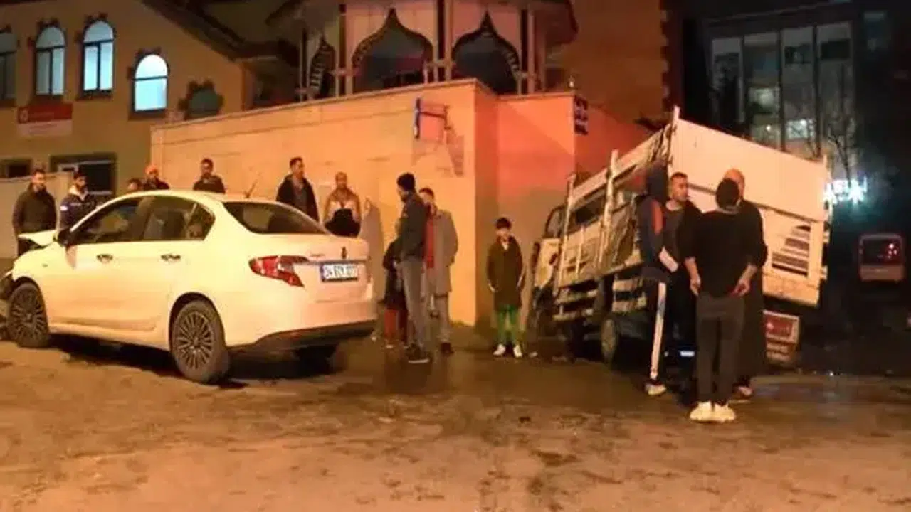 Kartal'da otomobilin çarptığı kamyonet caminin duvarına çarptı