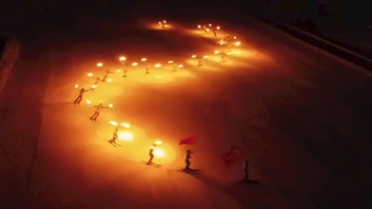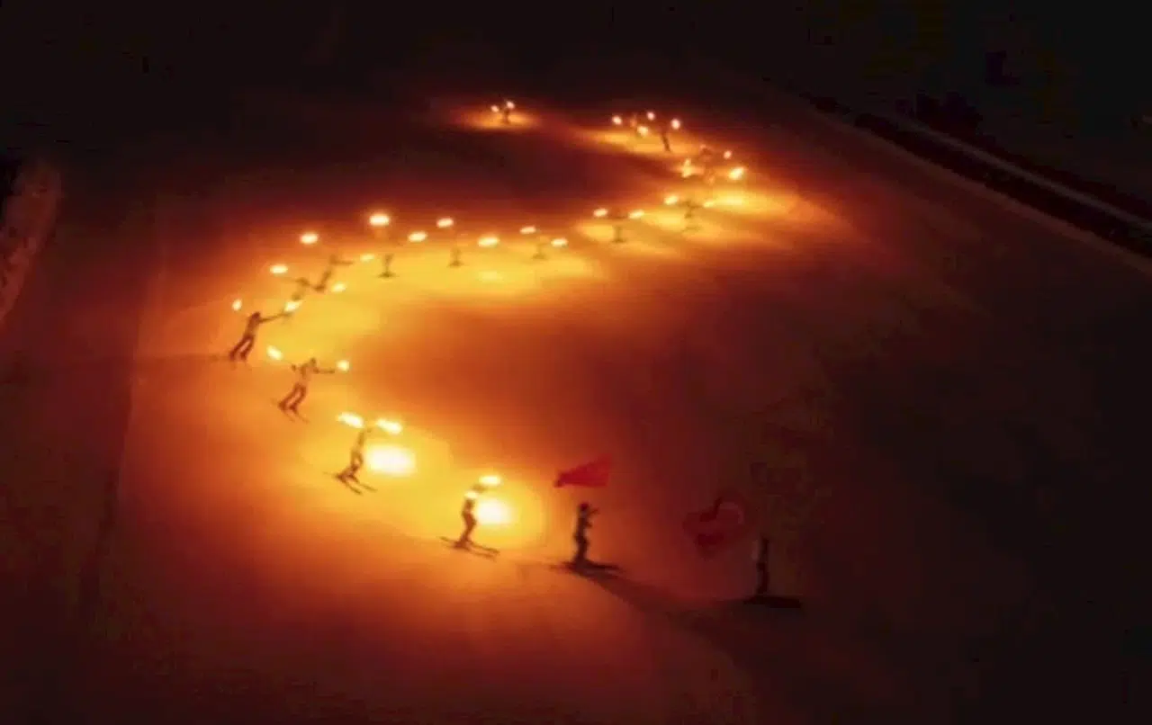 Kartalkaya’da meşalelerle kayak gösterisi