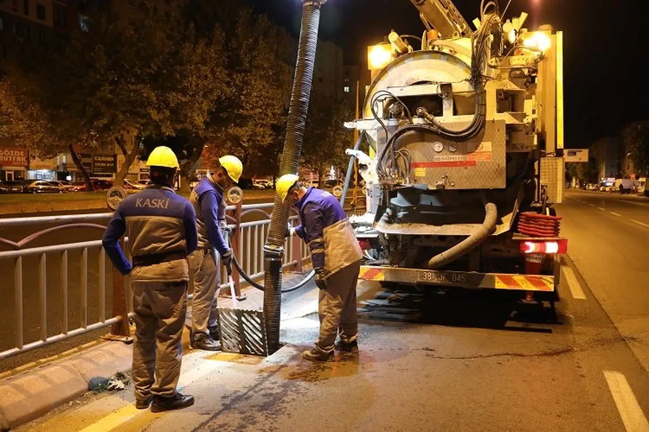 Kayseri Büyükşehir Belediyesi Su ve Kanalizasyon İdaresi (KASKİ) Genel Müdürlüğü, kış aylarında olası sel ve su baskınlarının önüne geçebilmek için kent genelinde yağmur suyu ızgaraları, yağmur suyu terfileri, kanalizasyon ve yağmur suyu hattı temizliğini tüm hızıyla sürdürüyor.