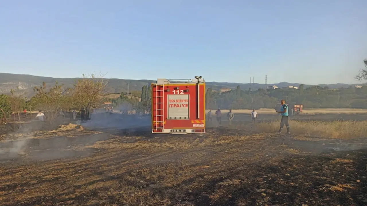 Yangın, saat 19.00 sıralarında Tosya ilçesi Yunus Emre Mahallesinde bulunan bir tarlada meydana geldi. İddiaya göre H.Ç.'ye ait tarlada başlayan anız yangını, bir anda yan tarafta bulunan İ.T.'ye ait saman balyalarının olduğu tarlaya sıçradı. Kısa sürede büyüyen alevler tüm tarlayı sardı. Dumanı gören çevredekilerin ihbarı üzerine olay yerine itfaiye ve Tosya Orman İşletme Müdürlüğü ekipleri sevk edildi. Ekiplerin yaklaşık 1 saatlik çabası sonucu yangın söndürülerek, soğutma çalışmaları başlatıldı. Meydana gelen olayda 4 dönüm tarla yanarken, 100 adet saman balyası da alevlere teslim oldu. Yangınla ilgili inceleme başlatıldı. (DHA)