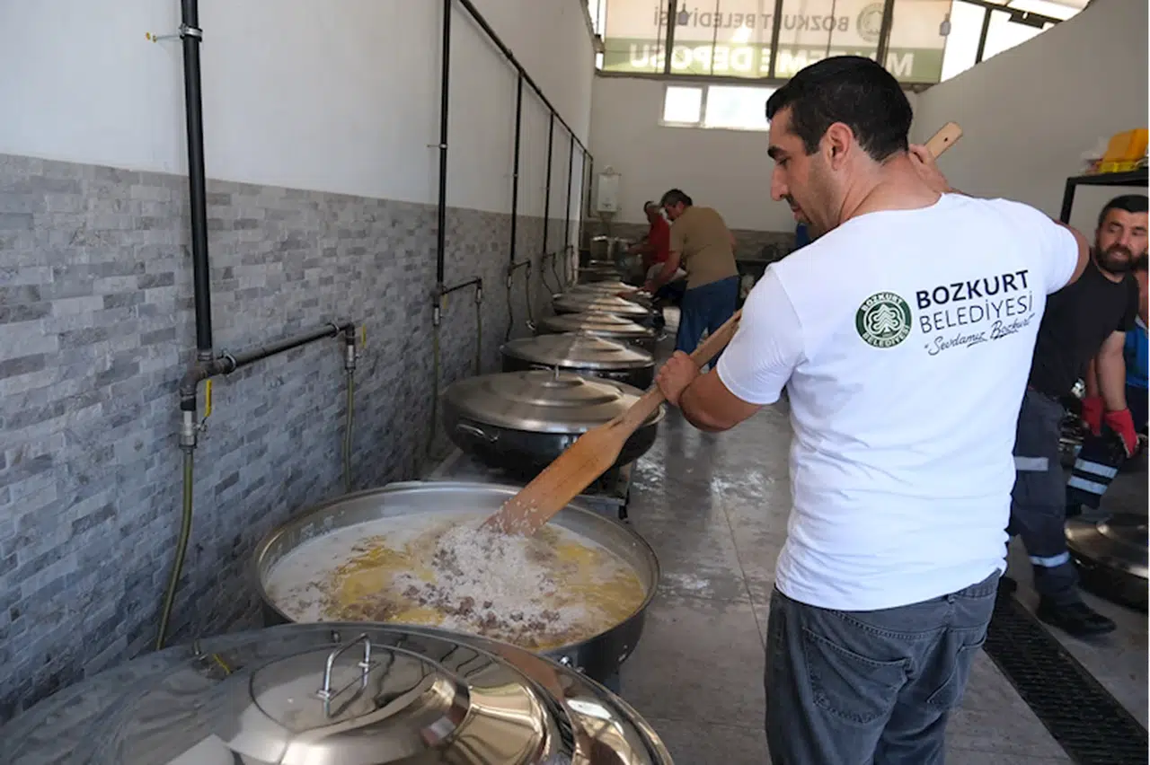 Kurban Bayramı dolayısıyla Bozkurt Meydanı'nda etkinliğin 132. yılı dolayısıyla katılımcılara, 1500 kilogram pirinç ve 760 kilogram et kullanılarak 118 kazanda yapılan etli pilav, belediye personeli tarafından dağıtıldı.