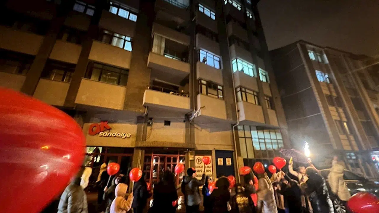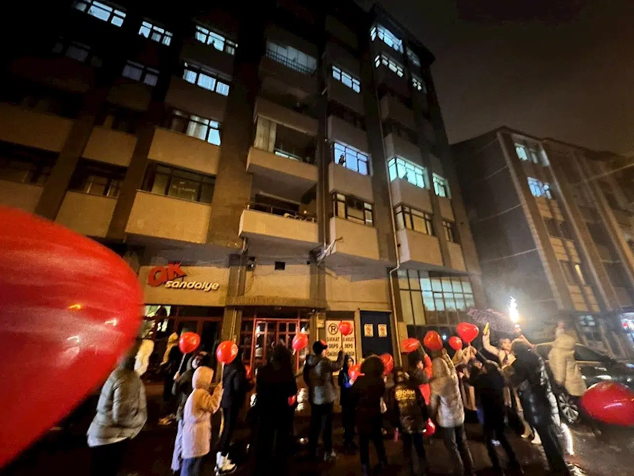 Şehit Burak Kapucuoğlu İlkokulu'nun öğrencileri ve velileri, sınıfı öğretmeni olarak görev yapan Neslihan Önder'in ikamet ettiği evin bulunduğu sokakta toplandı.