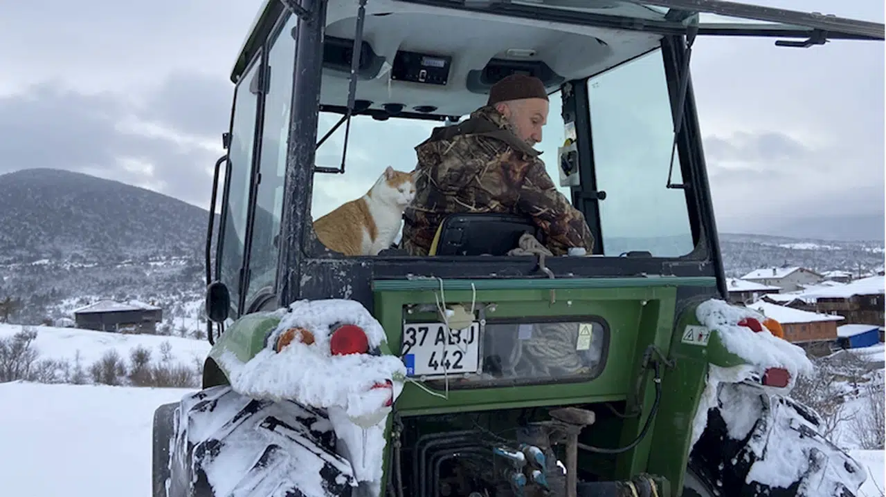 Dışarı çıktıklarında kedisinin hemen traktöre bindiğini belirten Kaya, "Traktörümüz kabinli olduğu için kedim Badem de yanıma oturuyor. Birlikte köy yollarını açıyoruz. O da bana eşlik ediyor. Köy içindeki yolları ve ana yola çıkış güzergahlarını açarak köylülerimizin evlerine rahatça ulaşmasını sağlıyoruz." dedi.