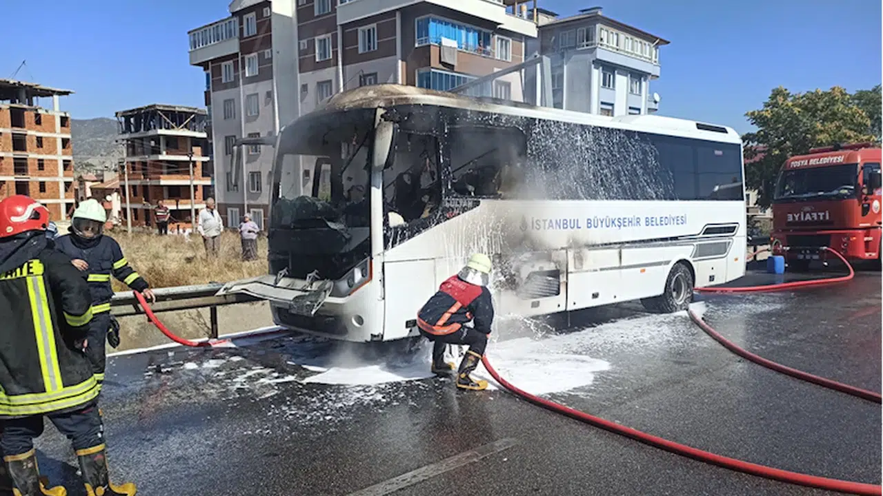 KASTAMONU (AA) - İstanbul Büyükşehir Belediyesine (İBB) ait midibüs Kastamonu'nun Tosya ilçesinde yanarak kullanılamaz hale geldi.