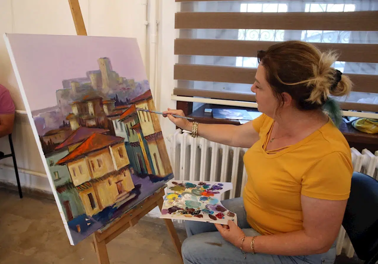 Ardından İl Kültür ve Turizm Müdürlüğü Saray Hamamı'nda bir araya gelen ressamlar, gözlemledikleri renklerin harmonisini tuvallerine yansıttı.