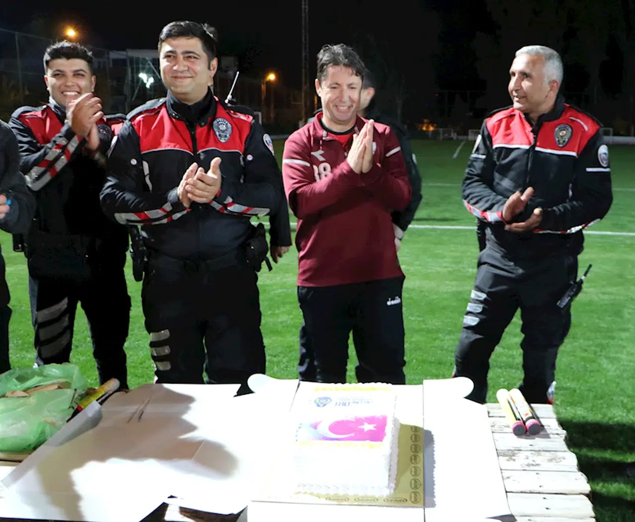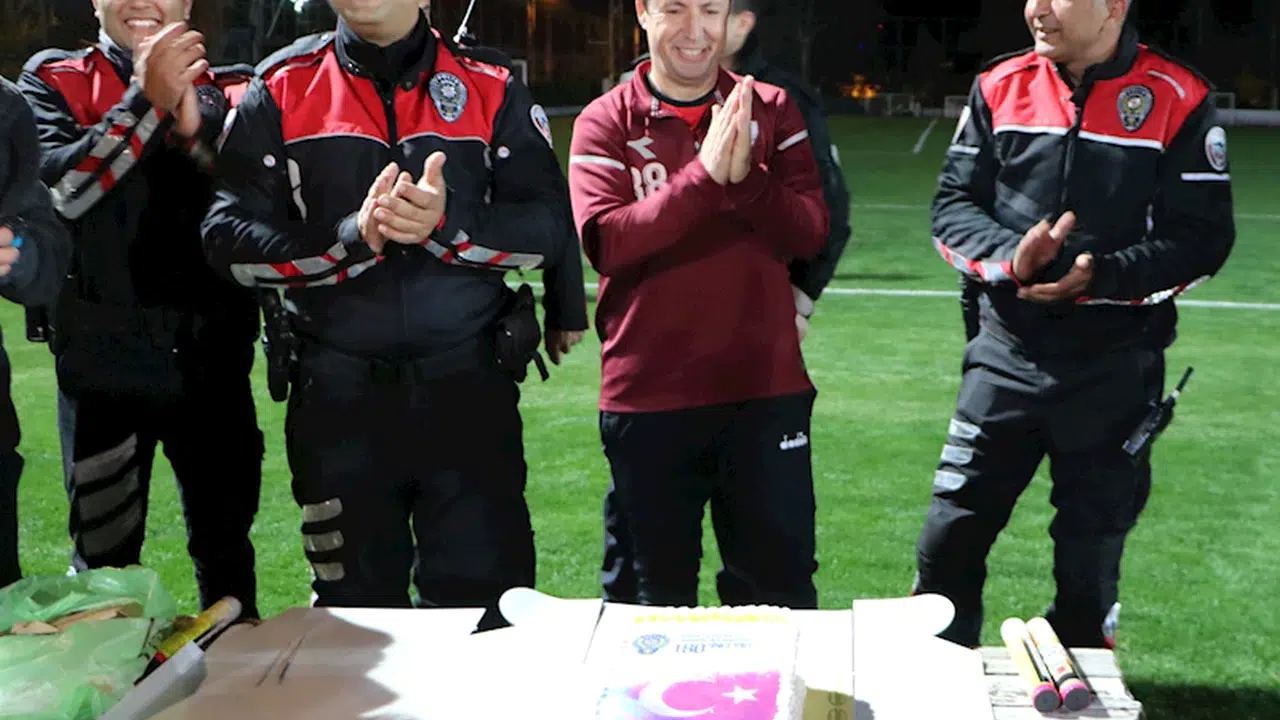 Levent YENİGÜN/KEMER, (DHA)- ANTALYA'nın Kemer ilçesinde futbol tesisinde kavga ihbarına giden polislere meşaleli ve pastalı Polis Haftası sürprizi yapıldı.