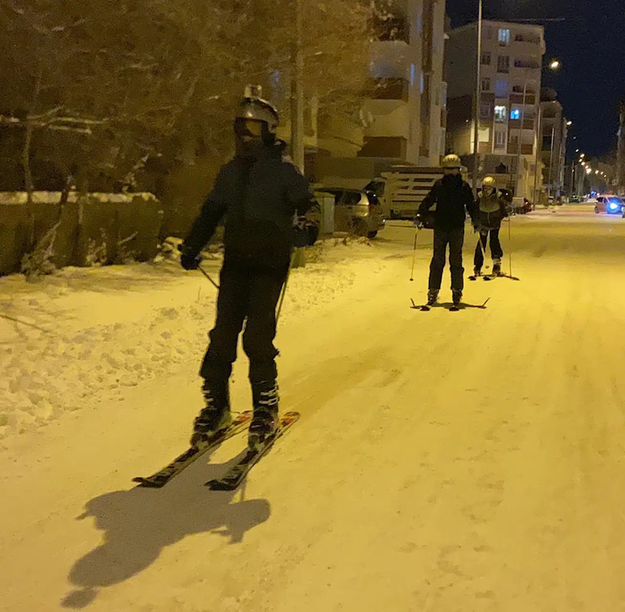 Dinçer AKTEMUR/ARDAHAN, (DHA)-ARDAHAN'da kar yağışı hayatı olumsuz etkilerken, kar kalınlığının 22 santimetreye ulaştığı kent merkezinde cadde ve sokaklar kayak pistine döndü. Yeterli kar olmadığı için Yalnızçam Kayak Merkezi'ne gidemeyen bir grup genç, kent merkezinde kayak yaptı.