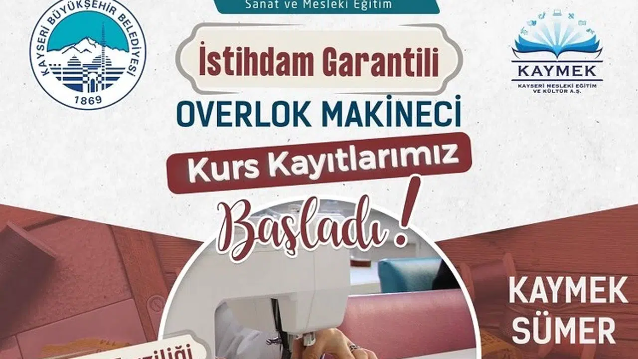 Kayseri Büyükşehir Belediyesi’nin mesleki kurslar düzenleyen eğitimde öncü kuruluşu Kayseri Mesleki Eğitim ve Kültür (KAYMEK) A.Ş. Kayseri’de mobilya üretimi yapan firmalara ara eleman yetiştirmek için istihdam garantili Overlok Makineci Kursu, 2 Ocak’ta başlıyor.