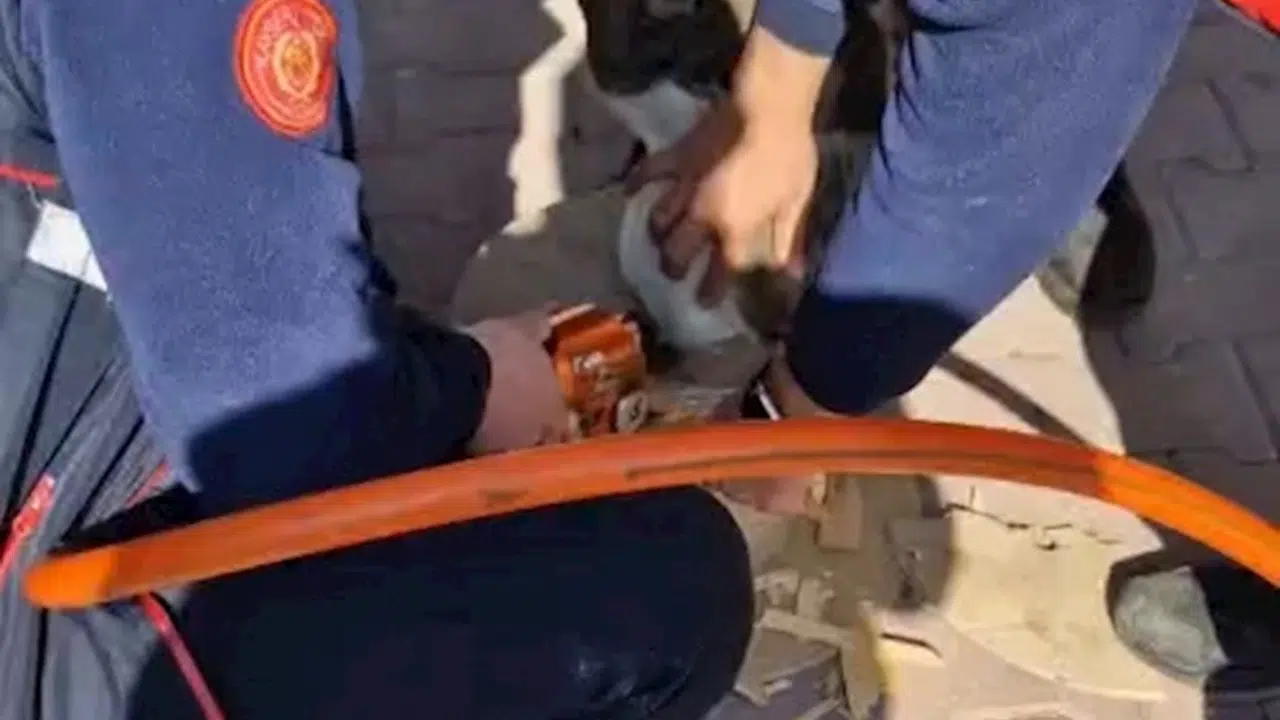 Kayseri itfaiyesi, ahşap makaraya sıkışan kediyi kurtardı