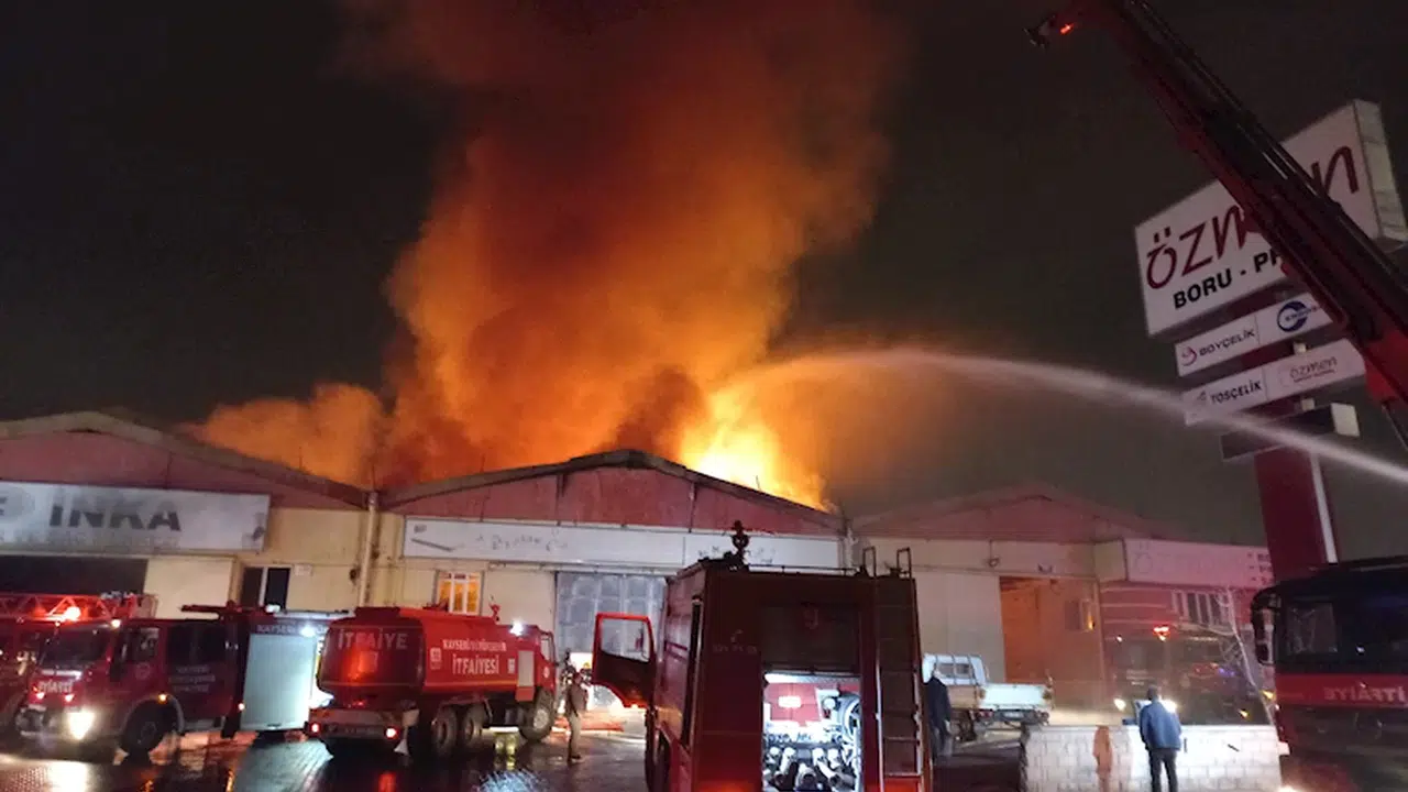 Yangın, saat 23.00 sıralarında Kayseri OSB 24'üncü Caddede bulunan boru-profil fabrikasında çıktı. Fabrikada henüz bilinmeyen nedenle çıkan yangını fark edenlerin ihbarı üzerine olay yerine polis, itfaiye ve sağlık ekipleri sevk edildi. Polis çevre güvenliğini sağlarken itfaiye görevlileri yangına müdahale başlattı. Kısa sürede büyüyen alevler fabrikanın büyük bir bölümünü kapladı. Yangının bitişikte iş yerlerine sıçramaması için itfaiye personeli yoğun çaba sarfetti. Yangın söndürme çalışmaları sürdürülüyor. (DHA)