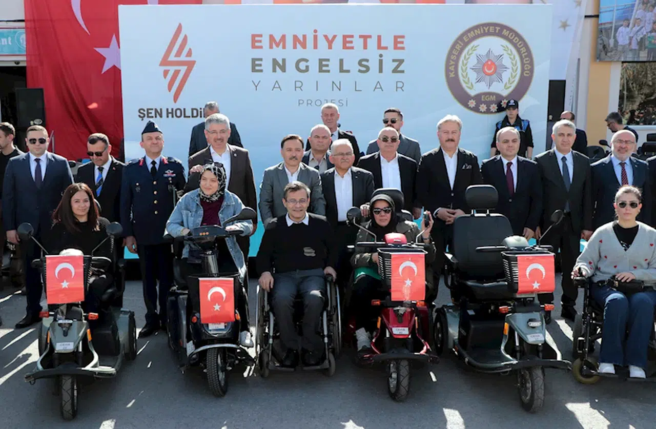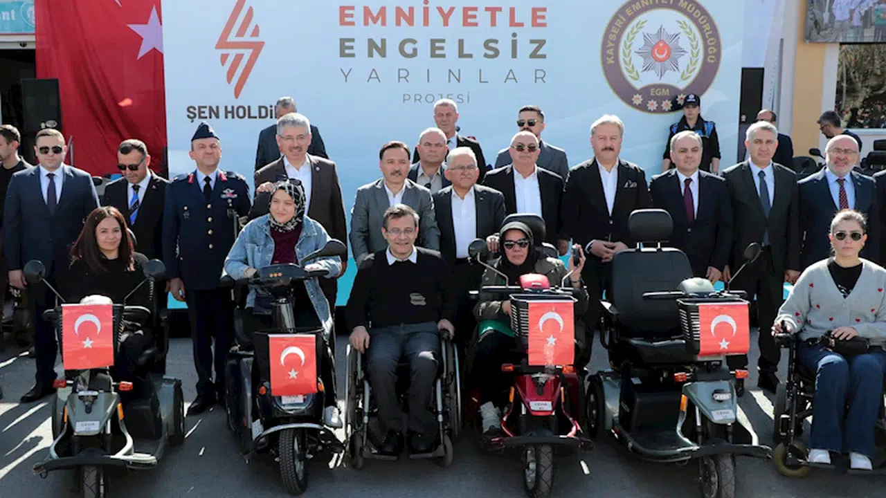 Furkan KAVUKLU/KAYSERİ, (DHA)- KAYSERİ'de hayırsever iş insanı Çetin Şen ve ailesi tarafından 'Emniyetle Engelsiz Yarınlar' projesi kapsamında satın alınan 130 adet akülü araç, engelli vatandaşlara dağıtıldı.