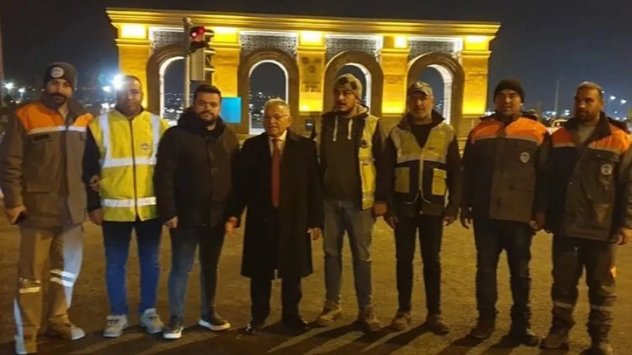 Kayseri'de Üniversite Kavşağı'nda gece mesaisi