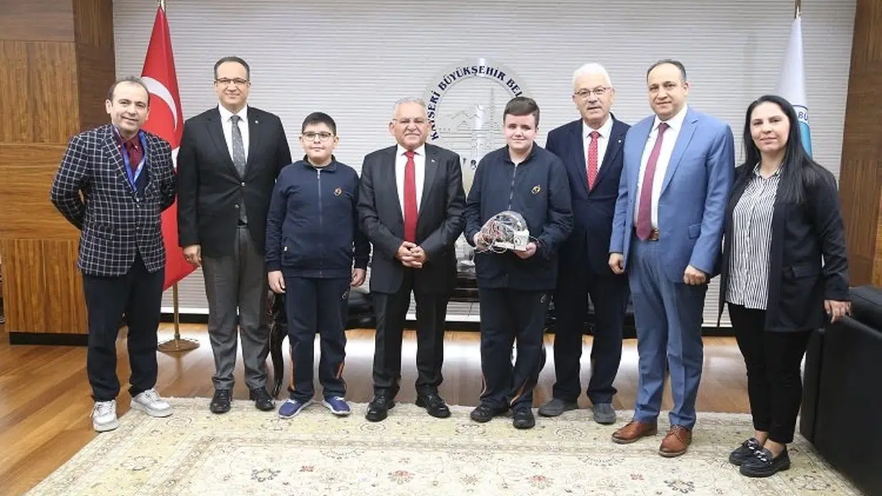 Tekden Koleji öğrencileri Ahmet Kasap ve Tuna Altunbulak, okul yöneticileri ve öğretmenleri ile birlikte Kayseri Büyükşehir Belediye Başkanı Dr. Memduh Büyükkılıç’a nezaket ziyaretinde bulunarak, geliştirdikleri ‘Akıllı Sera’ projesinin sunumunu yaptılar.