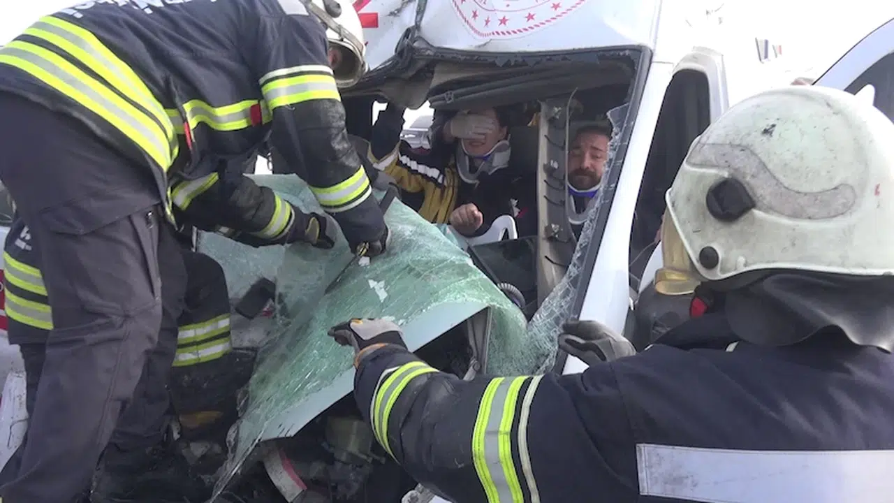 Kaza ihbarına giden ambulans, TIR'a çarptı; 3 sağlık görevlisi yaralı / Ek fotoğraflar