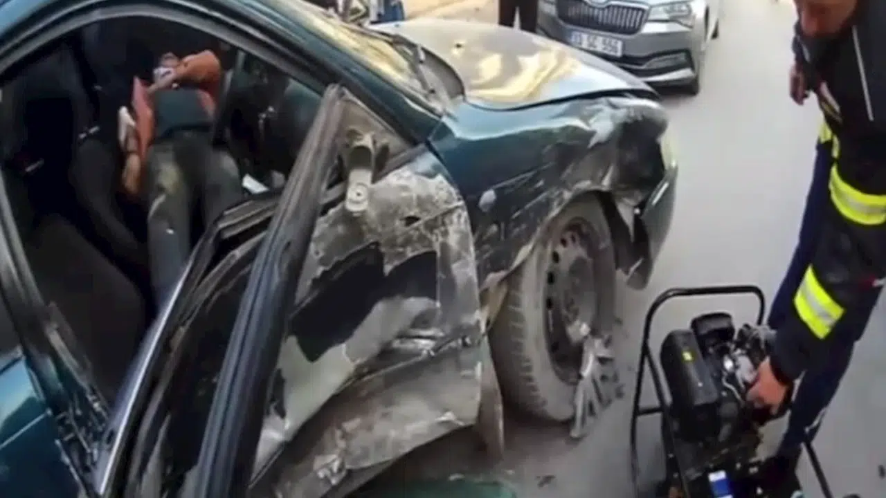 Kazada sıkışan sürücüyü itfaiye çıkardı
