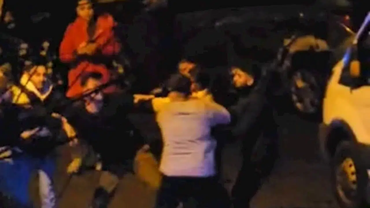Yaşanan arbede sırasında yaralanan kişiler, olay yerine gelen ambulanslarla hastaneye kaldırıldı. Olay anı ise çevredekilerin cep telefonu kamerasına yansıdı. (DHA)