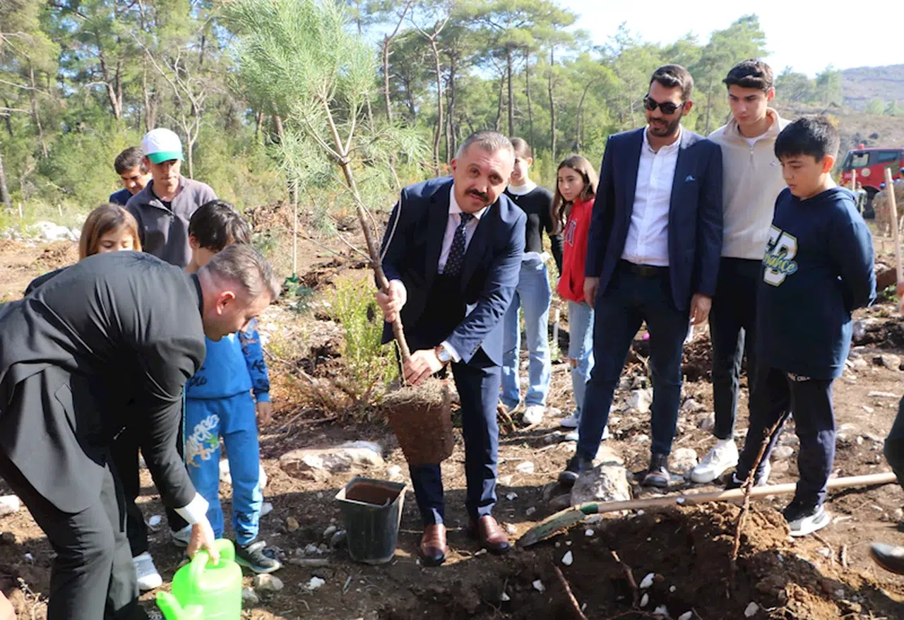 Kaymakam Ahmet Solmaz, ağaçlandırmanın önemine vurgu yaparak, "Orman deyince kadrini kıymetini en iyi anlayacağımız bölgelerden birinde yaşıyoruz. Geçen sene hepimizin canını yakan ve 400 hektarlık alanı etkileyen bir orman yangınını hepimiz sıkıntılı şekilde yaşamış olduk. Sadece orman görevlilerimiz değil sivil toplum örgütlerimiz ve tüm vatandaşlarımız en hassas duygularıyla o gün bu bölgede bu orman yangınını söndürmek için çaba ve gayret içinde oldu. İçinde bulunduğumuz bölge, deniziyle birlikte ormanıyla nam salmış, kendini göstermiş bir turizm bölgesi. Bizler misafirlerimizi sadece denizimizle değil, doğamızla da bu bölgeye çekiyoruz. Bu noktada 400 hektarlık alanın yeniden orman alanı olarak oluşturulması için Orman Bölge Müdürlüğümüzün koordinesinde ve işletme müdürlüğümüzün çalışmalarıyla milli parklarla birlikte bölgeyi yeniden canlandırmak için çalışmalarımızı devam ettiriyoruz. 1100 kilogram kızılçam tohumunun alana serpilmesiyle başlayan çalışmalarımızı bugün Milli Ağaçlandırma Günü'nde fidan dikimiyle devam ettiriyoruz. Bu bölgenin bu talihsiz olayı yaşamasına sebep olmuş etkenler insan da olsa doğal kaynaklar da olsa bizler üzerimize düşen sorumluluğu yerine getirip tekrardan her canlının önemli bir kaynağı olan doğanın yeniden şekillenmesi için görevimizi yerine getireceğiz" dedi.