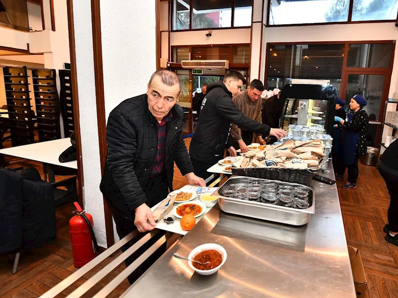 İzmir Büyükşehir Belediyesi, ramazan ayında 30 ilçede iftar sofrası kurmayı sürdürürken, bir taraftan da farklı mahallelerdeki Dayanışma Noktaları aracılığıyla ücretsiz iftar yemeği dağıtıyor. İzmir Büyükşehir Belediye Başkanı Dr. Cemil Tugay'ın Kent Lokantaları'ndaki iftar yemeği uygulamasının ücretsiz olacağını duyurmasının ardından dayanışma halkası daha da büyüdü. Yardımsever İzmirlilerin de bağışlarıyla katkıda bulunduğu proje, ramazan ayının sonuna kadar devam edecek. Başkan Dr. Cemil Tugay, Kent Lokantaları'nda öğle yemeğinin yanı sıra ramazan ayına özel olarak iftar saatinde de yemek servisi başlattıklarını belirterek "Ramazan ayı boyunca iftar yemeklerini ücretsiz vereceğiz. Ramazan bereketini birlikte yaşamak için sosyal belediyecilik anlayışımızla çalışmaya devam edeceğiz" dedi. (DHA)
