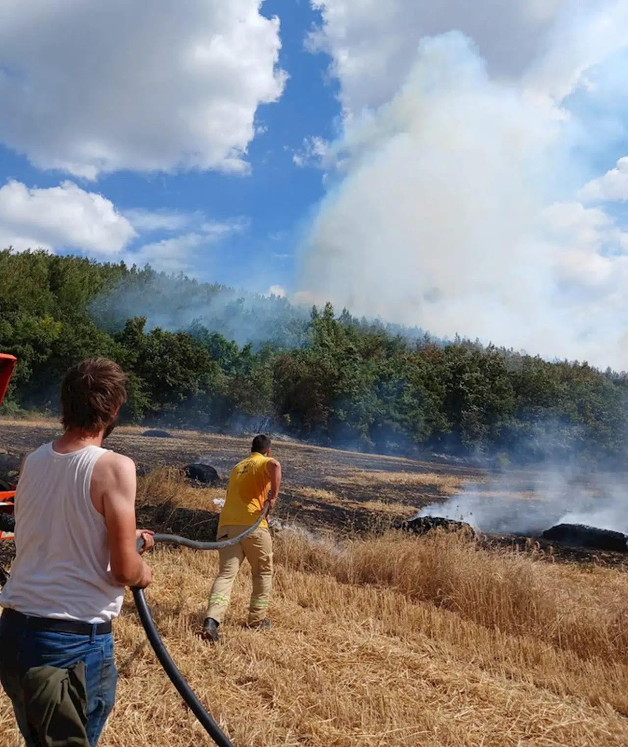 Ünsal YÜCEL/KEŞAN (Edirne), (DHA)- EDİRNE’nin Keşan ilçesine bağlı Şabanmera ve Yayla köyleri arasında balya makinesinden çıkan kıvılcımların çıkardığı anız yangınının ormana sıçradığı anlar, cep telefonuyla görüntülendi. Yangında 40 dönüm orman ile 8 dönüm tarım arazisi zarar gördü.