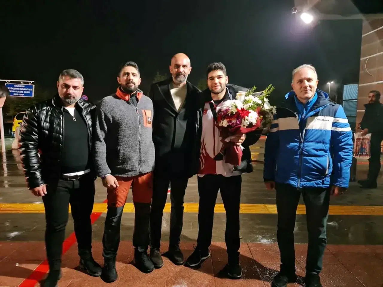 Kick boksta Avrupa ikincisi olan Hakan Koç, Erzurum'da coşkuyla karşılandı