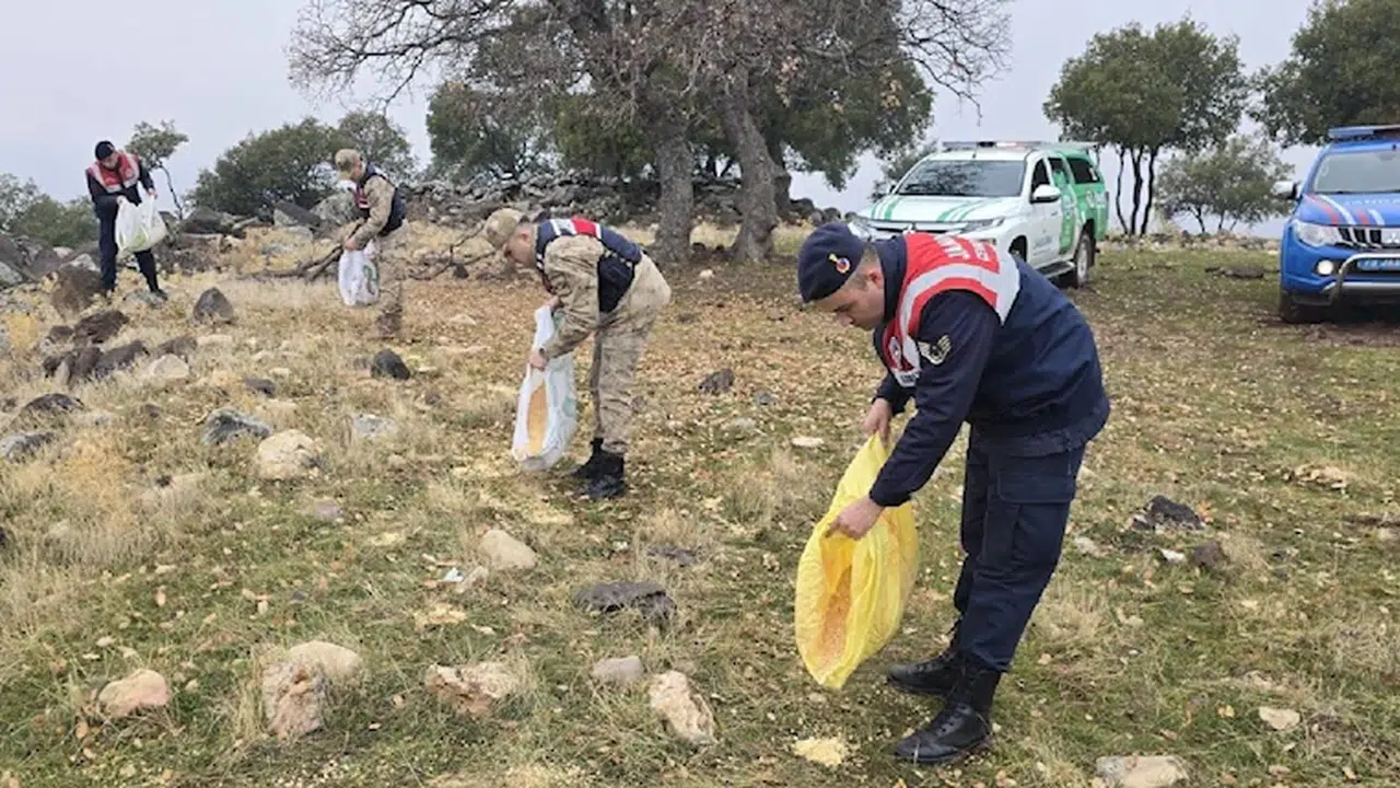 Kilis'te, yaban hayvanları için doğaya yem bırakıldı