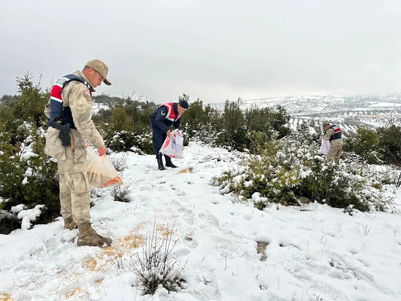 Kilis'te, yaban hayvanları için doğaya yem bırakıldı