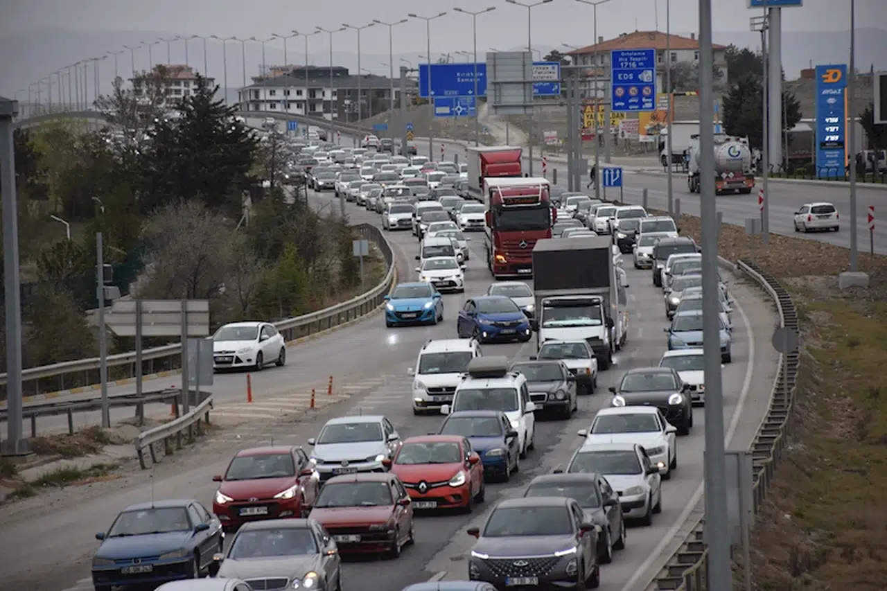 Kırıkkale'de Ramazan Bayramı’nın üçüncü gününde kara yollarında dönüş trafiği yoğunluğu yaşanmaya başlandı. Türkiye'nin doğu ve kuzeyindeki 43 ilin güzergahında yer alan Ankara-Kırıkkale kara yolunun Ankara istikametinde araç trafiği arttı. Yolda kilometrelerce araç kuyruğu oluşurken; trafik bazı noktalarda durma noktasına geldi. Kara yolunda hasarlı kazalar da meydana geldi. Polis ekipleri de ulaşımın aksamaması için önlemler aldı. Trafik yoğunluğunun hafta sonuna kadar devam etmesi bekleniyor. (DHA)